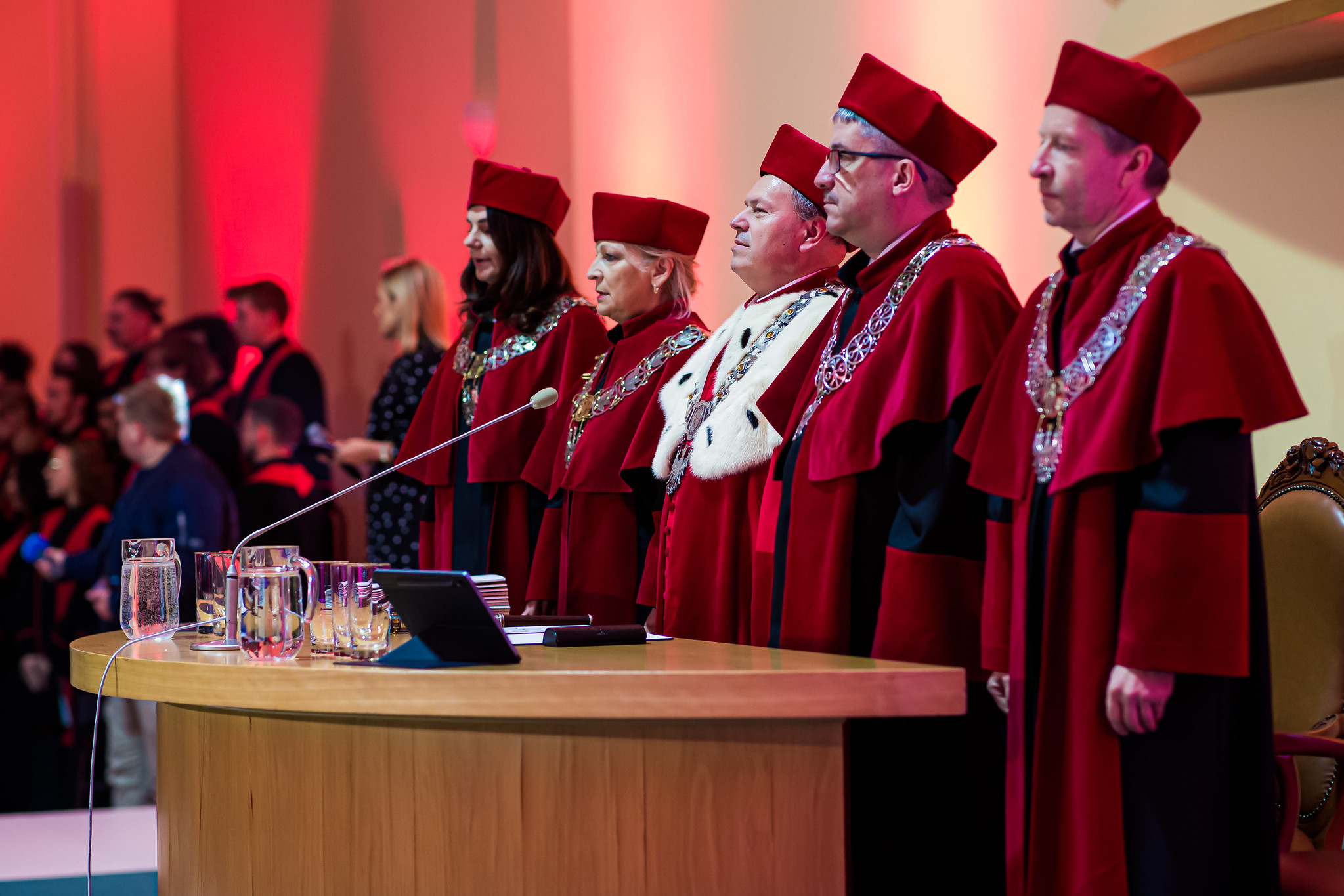 Głos zabrali również zaproszeni goście: – Szymon Ogłaza, Marszałek Województwa Opolskiego, przypomniał o znaczeniu Uniwersytetu jako przestrzeni kształtowania wartości i potencjału intelektualnego regionu. – Maciej Wujec, Wiceprezydent Miasta Opola, podkreślił ścisłą współpracę między uczelnią a miastem, wskazując, że rozwój akademicki jest nierozerwalnie związany z rozwojem Opola. – Ks. bp Andrzej Czaja zwrócił uwagę na duchowy wymiar edukacji, podkreślając jedność wiary i rozumu jako fundamentu prawdziwego poznania.